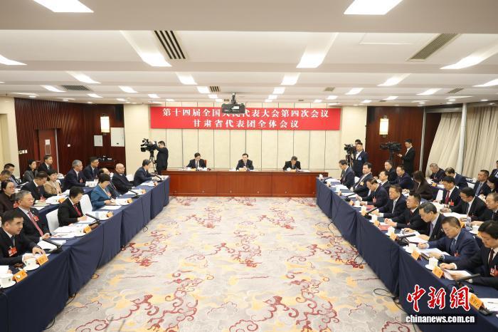 3月7日,十四屆全國(guó)人大四次會(huì)議甘肅代表團(tuán)舉行開(kāi)放團(tuán)組會(huì)議,審查計(jì)劃報(bào)告和草案、預(yù)算報(bào)告和草案。中新社記者 盛佳鵬 攝