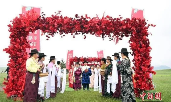 數(shù)十對(duì)新人在甘肅甘南草原喜結(jié)連理