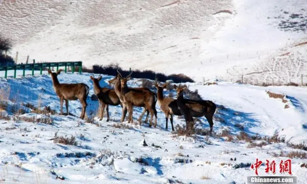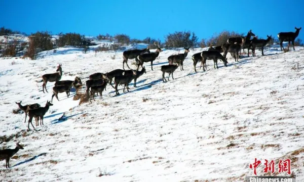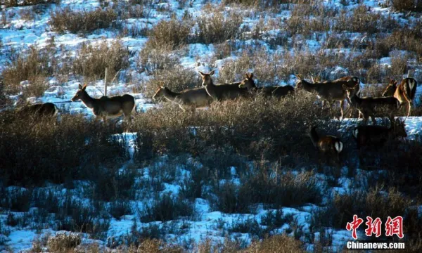 甘肅天祝馬牙雪山下馬鹿狍鹿成群“出游”