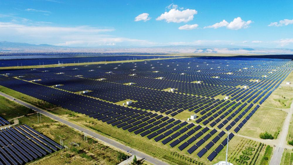 ??青海省海南藏族自治州千萬千瓦級可再生能源基地光伏發(fā)電園區(qū)。(受訪者供圖)