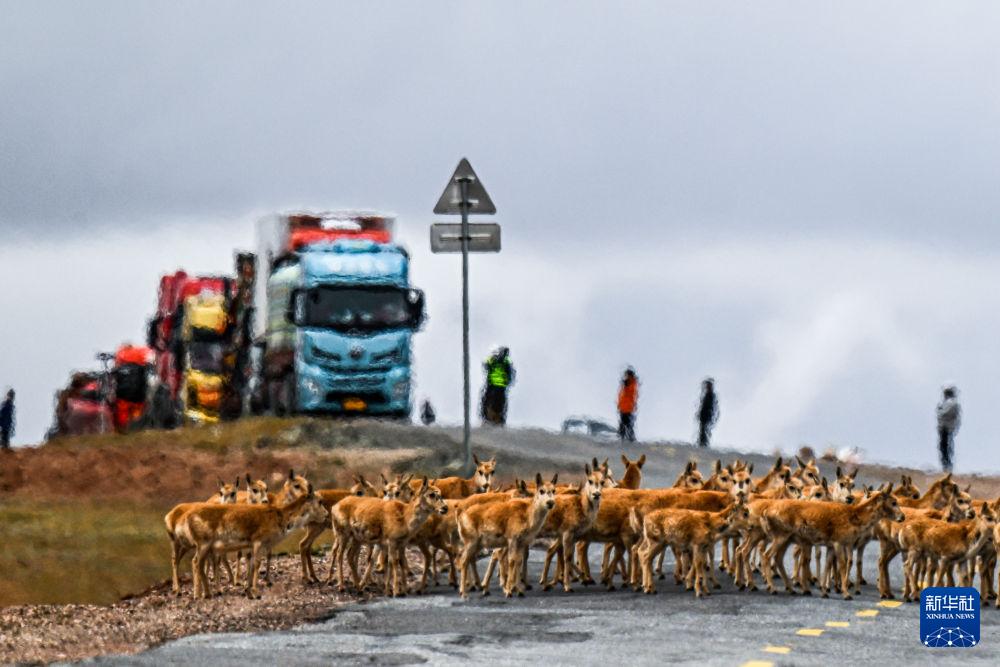 70年過(guò)去,青藏公路與可可西里這片土地早已“融為一體”。青藏公路3001、3002公里處,是可可西里藏羚羊遷徙的重要通道。每到藏羚羊遷徙產(chǎn)仔季,在可可西里工作人員的指揮下,來(lái)往車(chē)輛會(huì)在這里自覺(jué)排成長(zhǎng)龍,在遠(yuǎn)處默默等待,為“高原精靈”讓路。