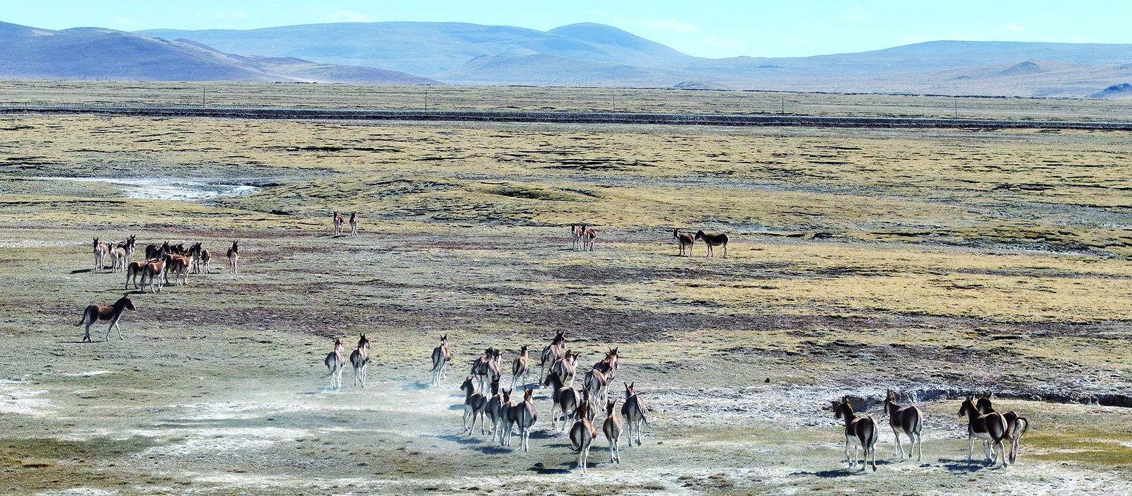 治多縣索加鄉(xiāng)曠野中奔馳的藏野驢。記者 張多鈞 才貢加 王玉瑩 攝