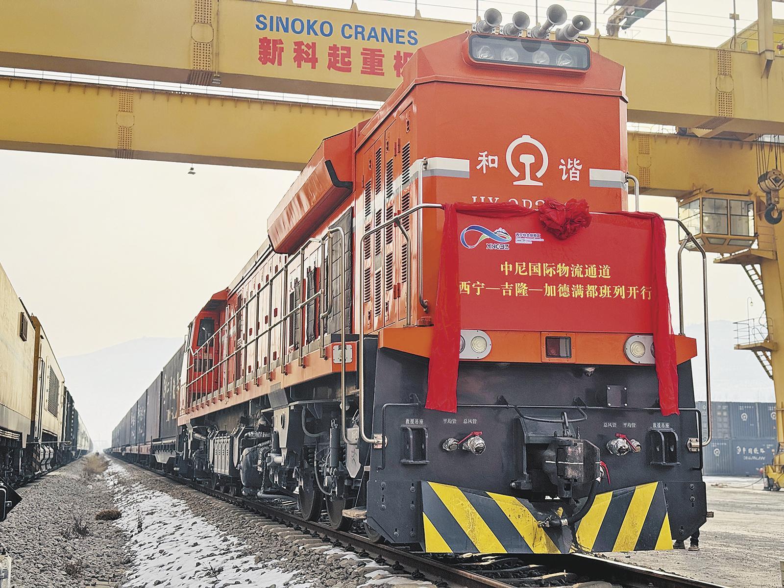 中尼國際物流通道西寧-吉隆-加德滿都班列開行。西寧海關(guān)供圖