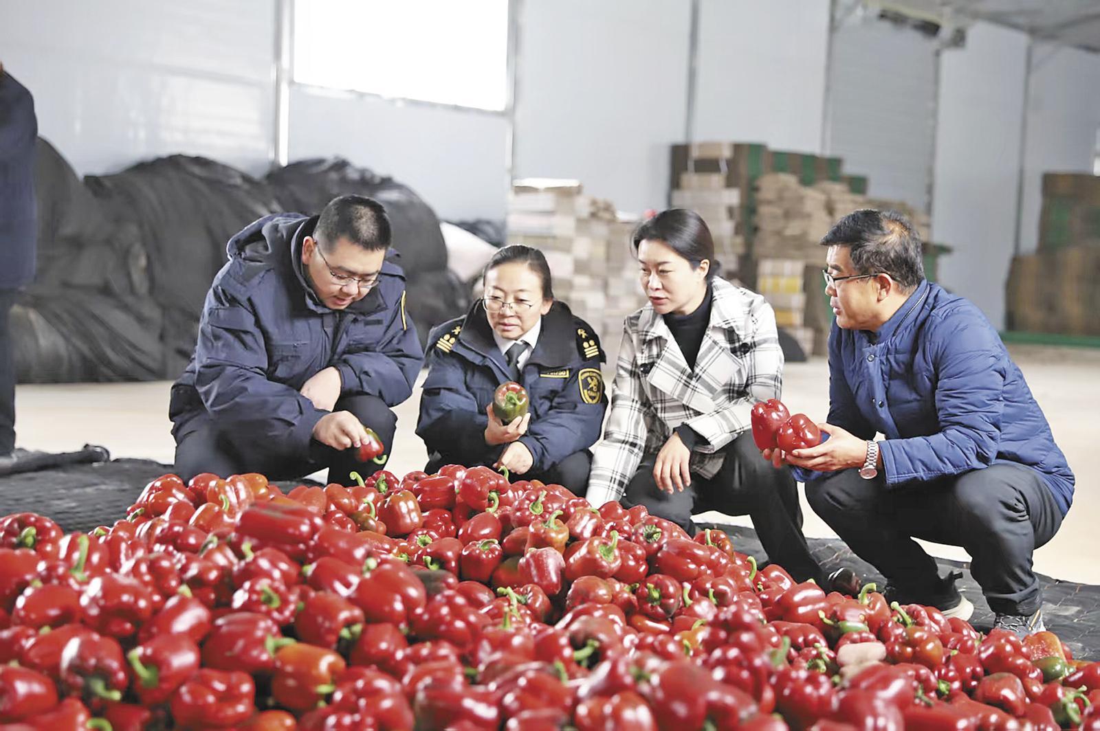西寧海關(guān)工作人員查看出口彩椒。西寧海關(guān)供圖