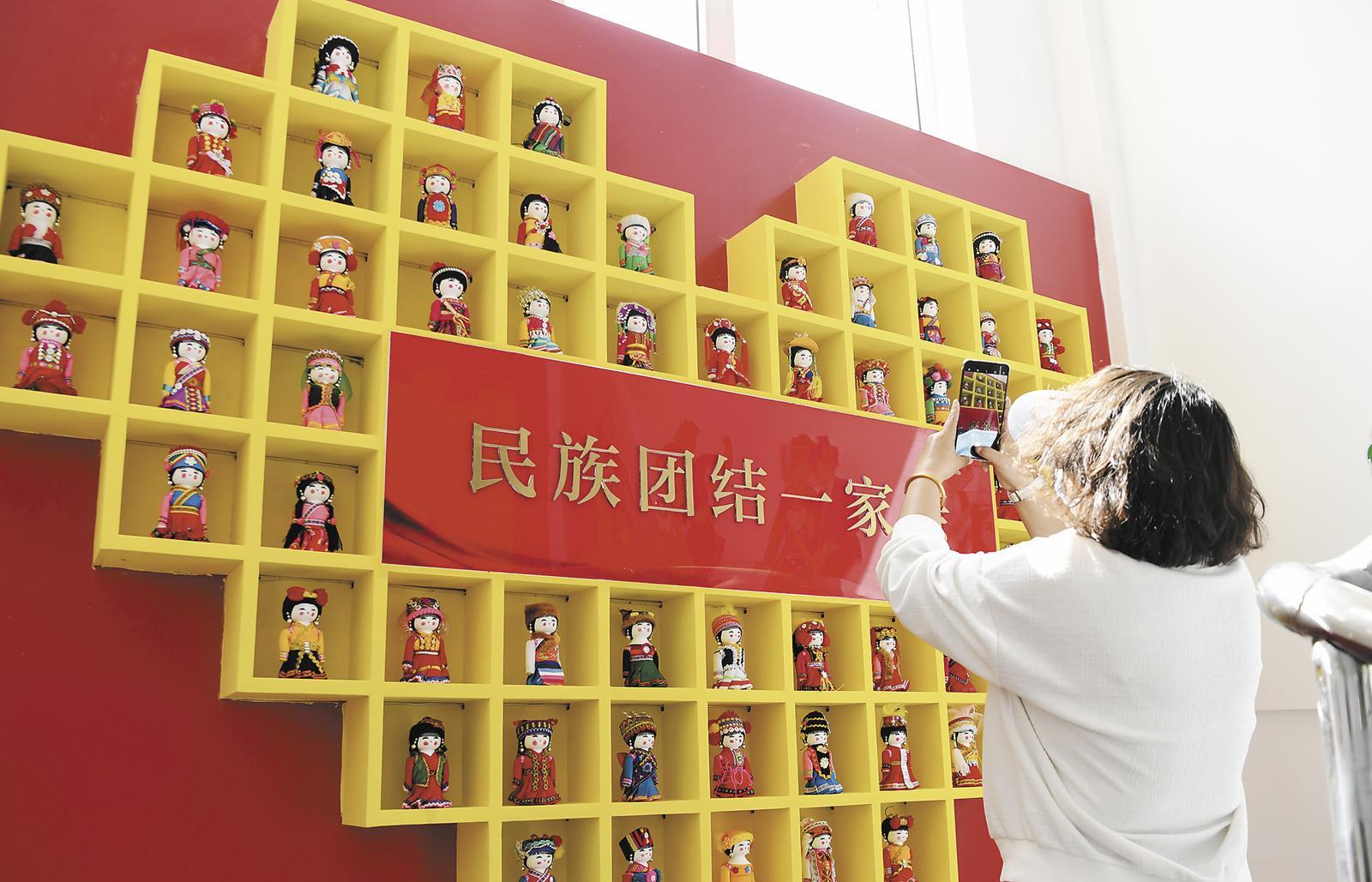 富有特色的民族團(tuán)結(jié)主題活動(dòng)墻。記者 李慶玲 攝
