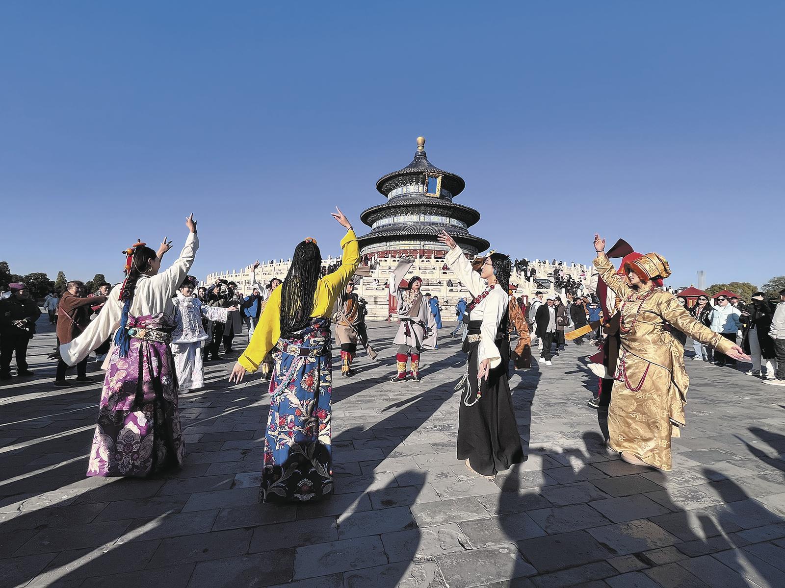 在北京天壇展示玉樹(shù)傳統(tǒng)文化魅力。記者 程宦寧 攝