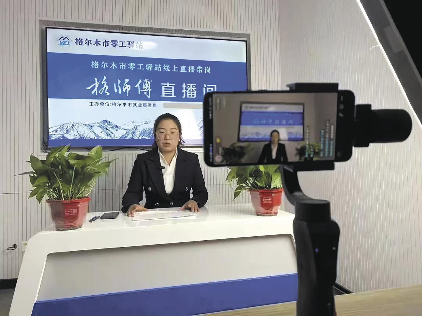 格爾木市線上直播帶崗。格爾木市就業(yè)服務局提供