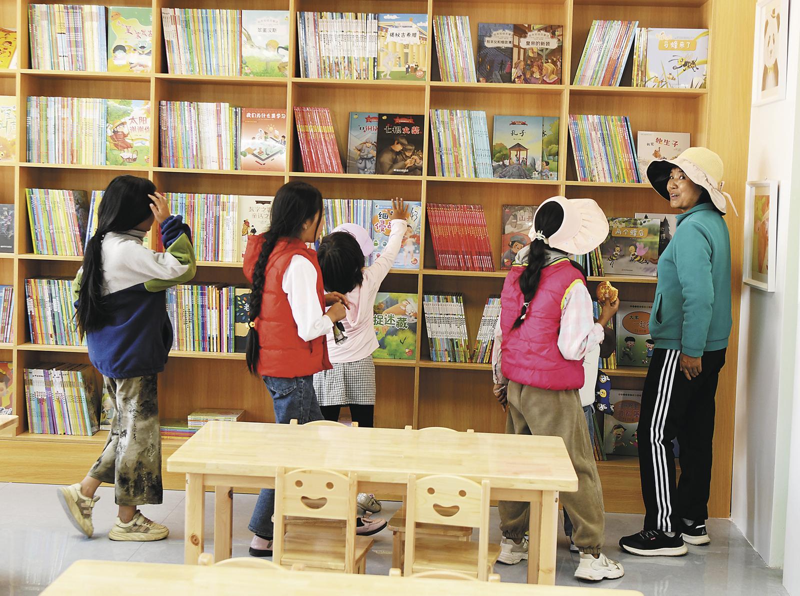 社區(qū)居民帶著孩子在社區(qū)圖書(shū)室免費(fèi)閱讀學(xué)習(xí)。記者 李慶玲 攝
