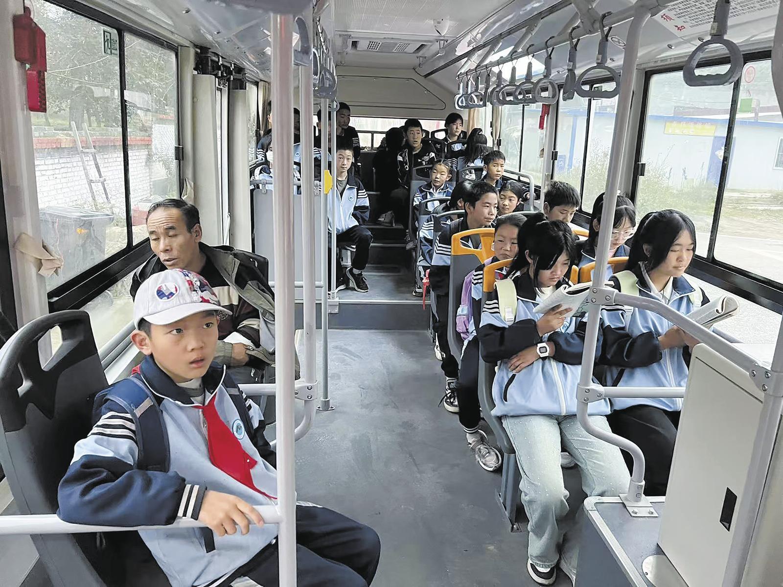 學生乘坐915路索爾加公交專線。湟中區(qū)公交公司魯沙爾車隊供圖