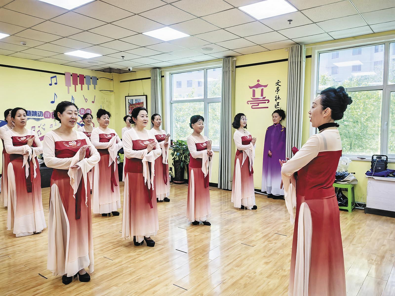 文亭巷社區(qū)綜合服務(wù)中心舞蹈室內(nèi)正在排練節(jié)目。