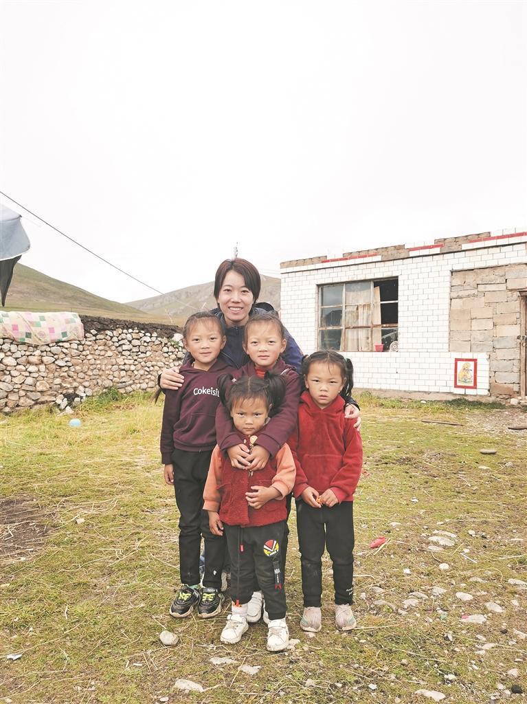 孫美紅下鄉(xiāng)調(diào)研和藏族兒童在一起。