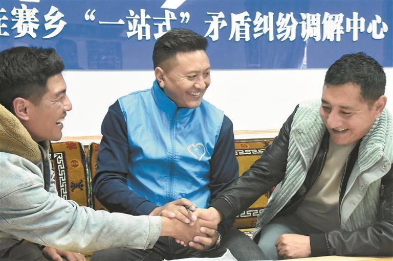 來(lái)到鄉(xiāng)司法所調(diào)解室,坐在沙發(fā)中間的肉旦緊緊將兩邊村民的手和自己的手握在一起,“這不就握手言和了嘛,家庭里親戚之間難免有個(gè)磕磕碰碰,坐下來(lái)咱們一起聊一聊,說(shuō)完其實(shí)也就那么回事。好了,既然心結(jié)解開(kāi)了,就高高興興地回。第一書(shū)記來(lái)找我還有事要商量?!?/p>