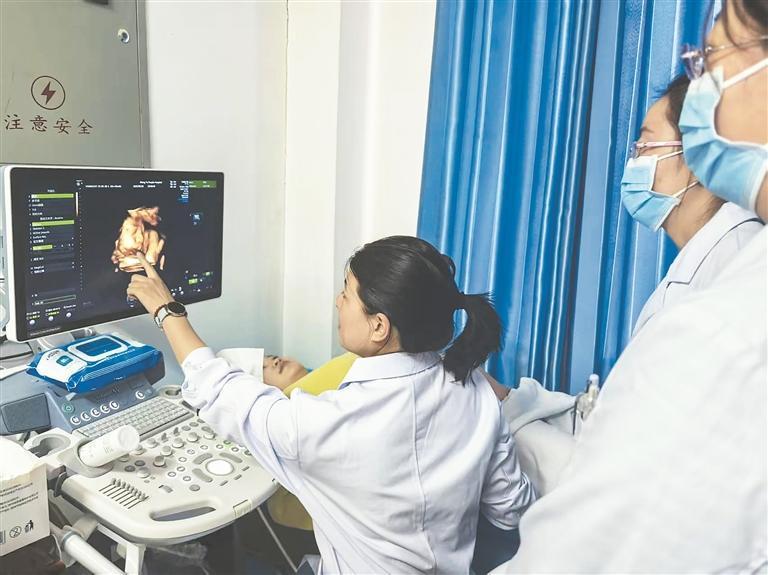 朱悠悠醫(yī)師為茫崖醫(yī)務(wù)人員講解三維超聲下胎兒面部結(jié)構(gòu)細(xì)節(jié),助力提升診斷精準(zhǔn)度。記者 冉志敏 攝