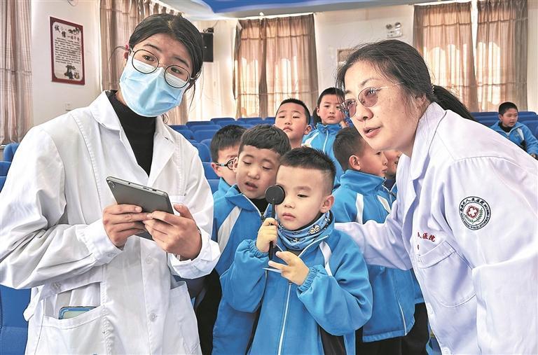 在德令哈市實驗小學,援青醫(yī)療專家和海西州人民醫(yī)院的醫(yī)生正在給學生進行視力篩查。