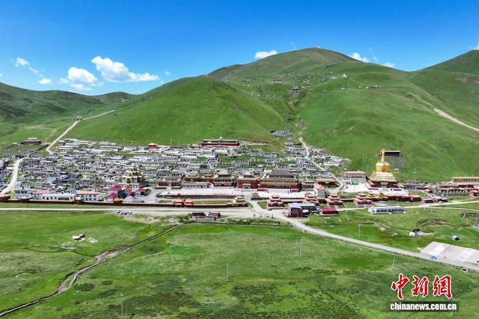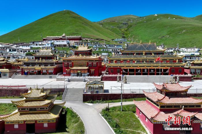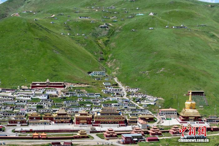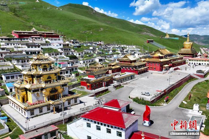 8月16日,航拍位于青海省果洛藏族自治州達日縣境內(nèi)的查朗寺。中新社記者 薛蒂 攝