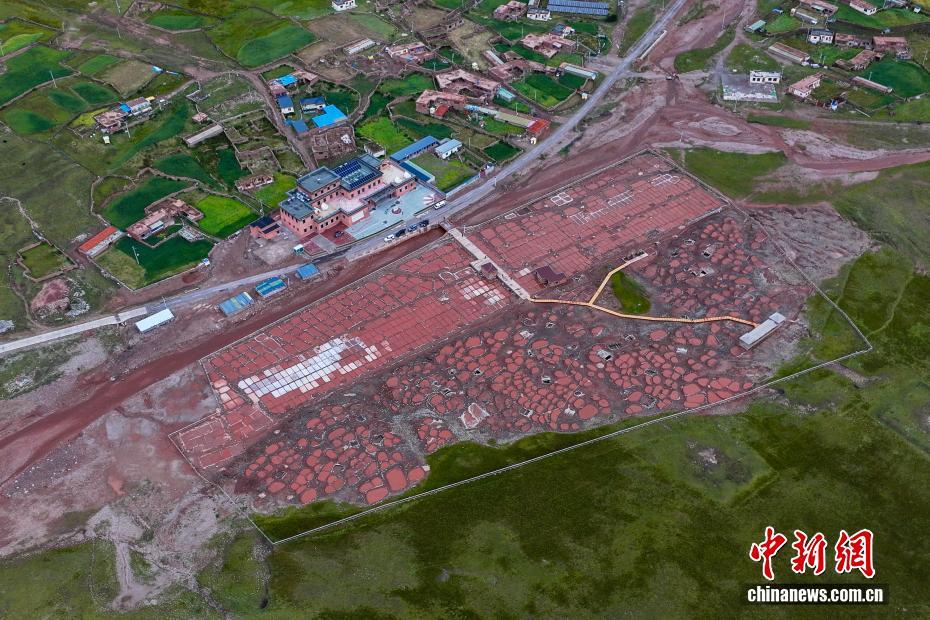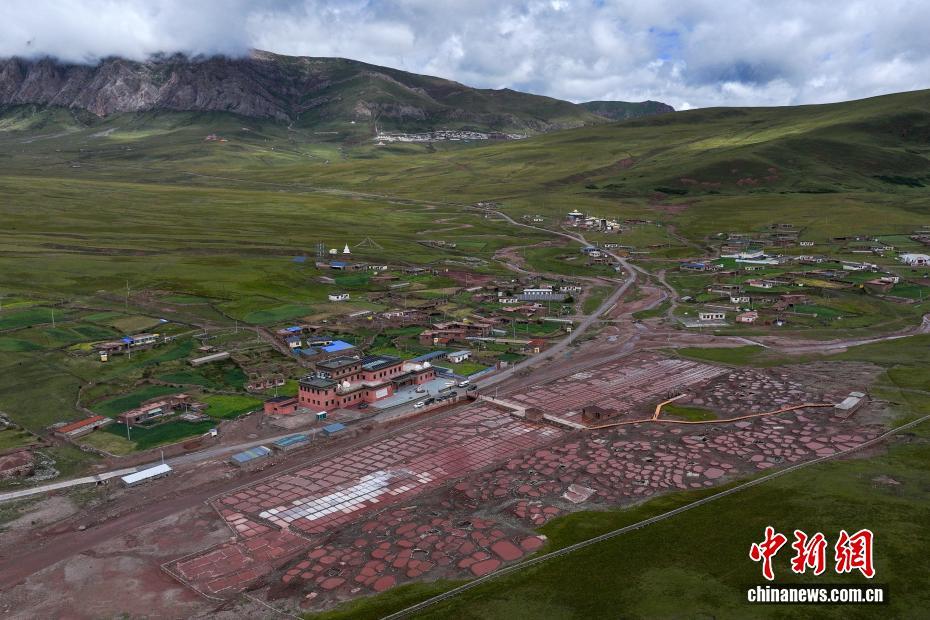 8月22日,航拍位于青海省玉樹藏族自治州囊謙縣的白扎鹽場秋日景色。擁有上千年歷史的白扎鹽場至今仍沿襲著古老的曬鹽、制鹽方式,所生產(chǎn)的食鹽暢銷西藏、四川、甘肅等省區(qū)。