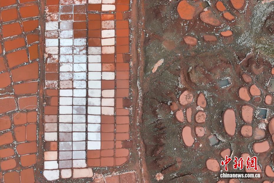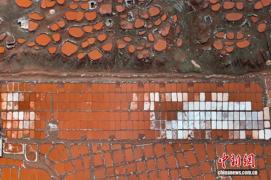 圖為航拍白扎鹽場。(無人機照片)中新社記者 薛蒂 攝