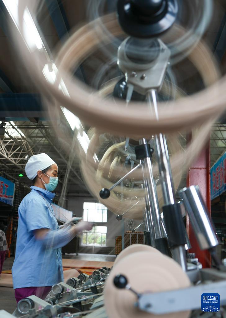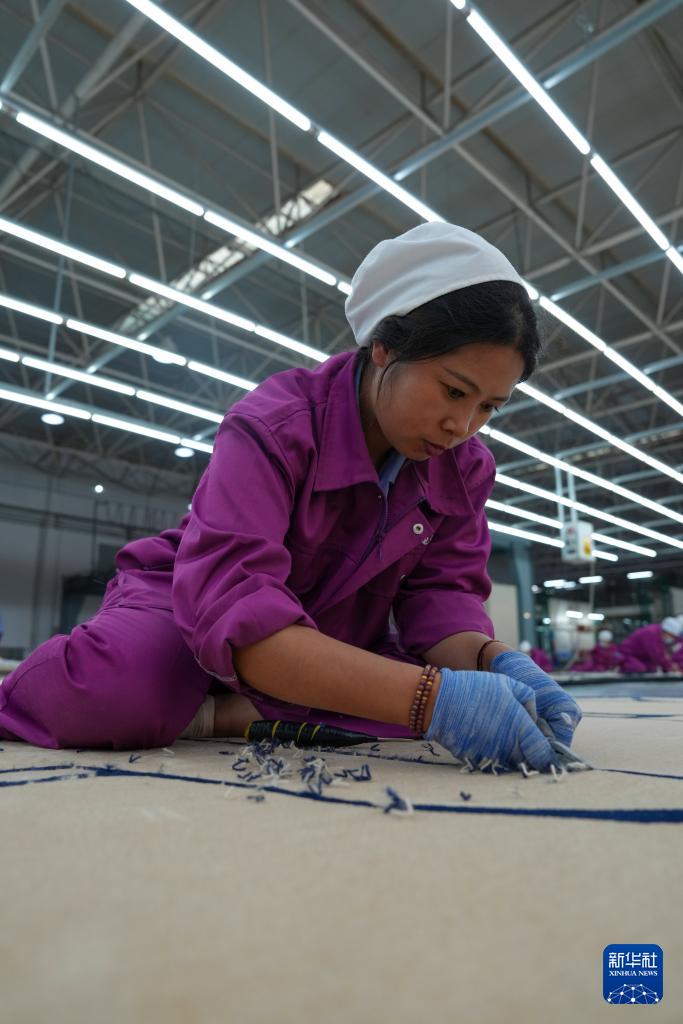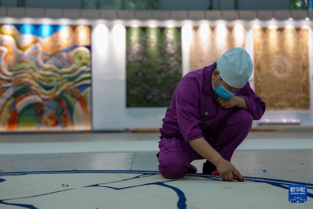9月27日,在西寧市圣源地毯集團(tuán)有限公司生產(chǎn)車間,一名操作工在制作藏毯。新華社記者 杜笑微 攝