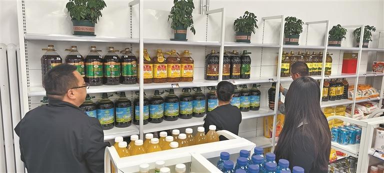 “朔鄉(xiāng)雨露”菜籽油擺上貨架。大通縣委組織部供圖
