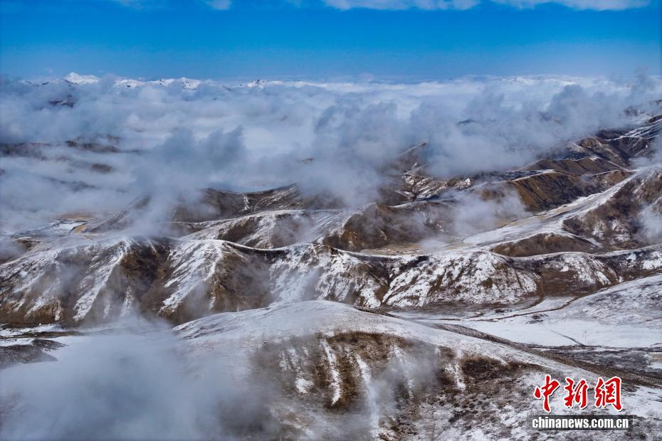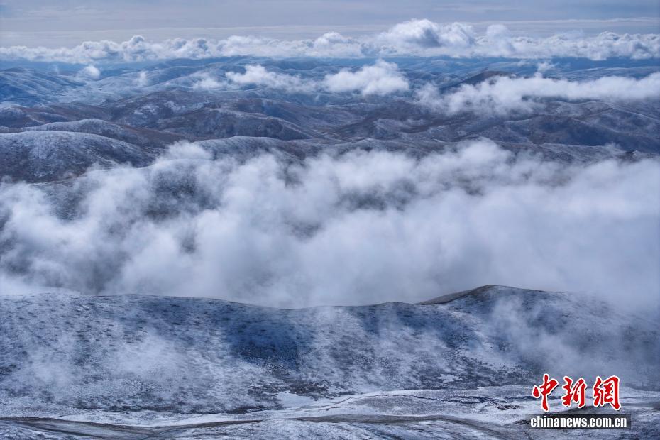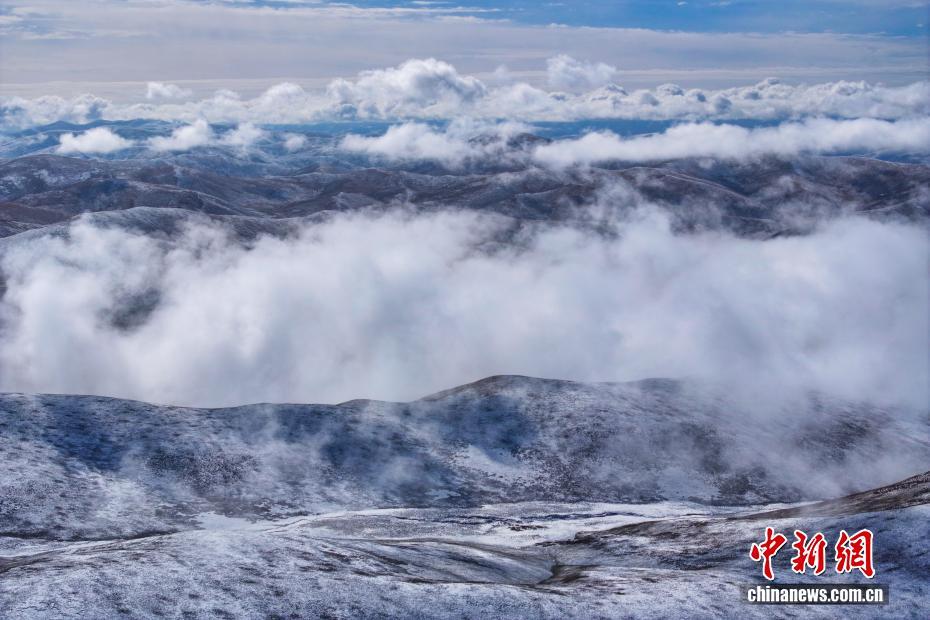 10月17日,一場降雪過后,平均海拔4200米以上的青海省果洛藏族自治州達日縣出現(xiàn)云海景觀,從空中俯瞰,落雪的山巒在云霧中若影若現(xiàn),宛如壯闊水墨畫卷。