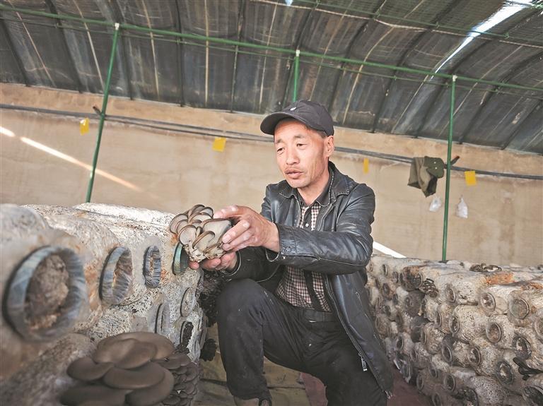 農(nóng)戶采摘蘑菇。記者 李慶玲 攝