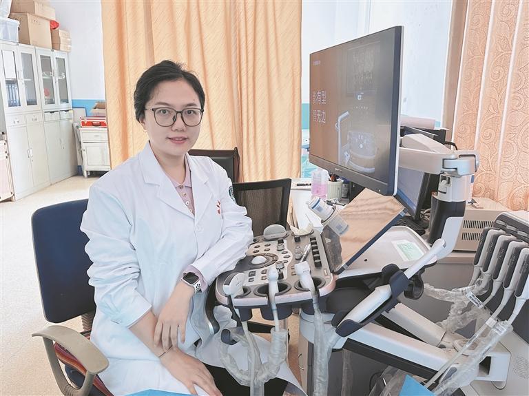 來自清華大學(xué)玉泉醫(yī)院超聲科的援青隊員杜晶醫(yī)生調(diào)試儀器中。