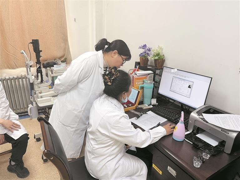 徐連那(左)指導(dǎo)年輕醫(yī)生工作。記者 馬振東 攝