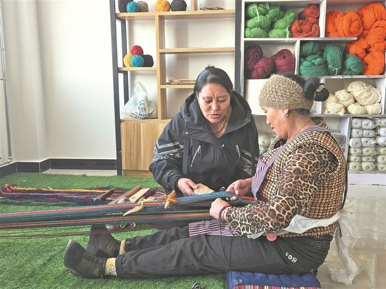 村子另一頭,崗巴布民族手工藝品加工專業(yè)合作社的新加工車間,負(fù)責(zé)人三木吉指尖蹭過(guò)氆氌毯的藏式花紋,彩色絲線在織機(jī)上舞動(dòng),“咔嗒”的聲響里藏著她的笑意:“10月搬來(lái)這新屋子,效率提高不少嘞。”
