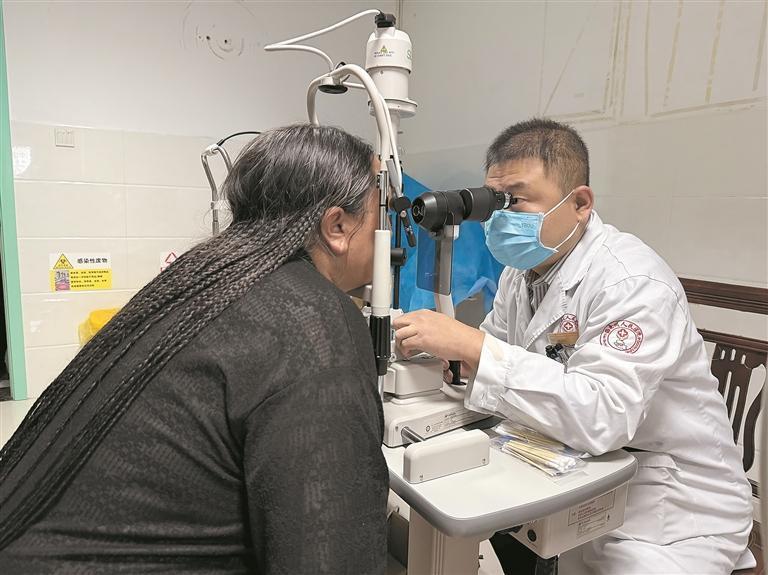 主治醫(yī)師張永明為患者術(shù)后檢查。記者 拉毛措 顧植霞 攝