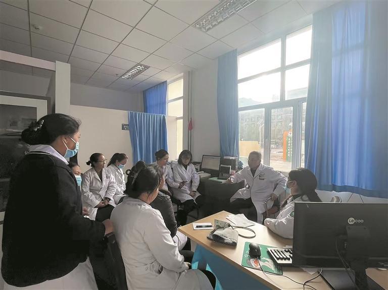 在囊謙縣人民醫(yī)院的遠(yuǎn)程會(huì)診中心內(nèi),梁海峰正帶著院里的骨干醫(yī)生與首都醫(yī)科大學(xué)附屬復(fù)興醫(yī)院進(jìn)行一場跨越千里的“云端”培訓(xùn)。培訓(xùn)結(jié)束后,顧不上休息,梁海峰又快步來到內(nèi)科診室,此時(shí)門外已有很多等候的患者。