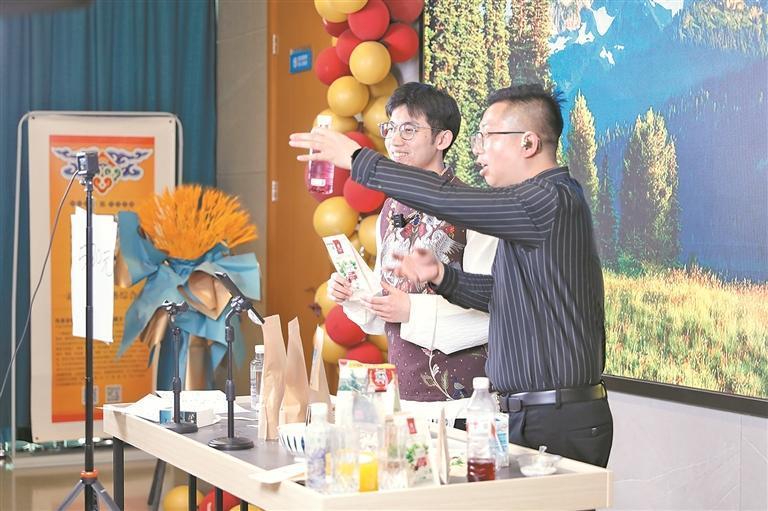 青海農(nóng)林牧商品交易中心現(xiàn)場直播帶貨助力“青貨出青”。交易中心供圖