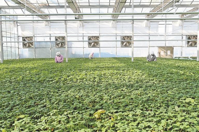 “這是‘寧湟一號(hào)’,今年5月16日,通過東西部協(xié)作,由江蘇省農(nóng)科院授權(quán)湟中區(qū),再由湟中區(qū)授權(quán)我們繁育的新品種。它兼具高產(chǎn)、強(qiáng)抗病性與抗逆性,口感上乘。目前我們正在推進(jìn)種苗繁育,預(yù)計(jì)明后年將推向全國?!?2月4日,冬日暖陽灑向西寧市湟中區(qū)多巴鎮(zhèn)玉拉村現(xiàn)代農(nóng)業(yè)產(chǎn)業(yè)園的脫毒草莓種苗繁育基地,青海植健農(nóng)業(yè)科技有限公司負(fù)責(zé)人胡文海正俯身查看草莓苗長勢。
