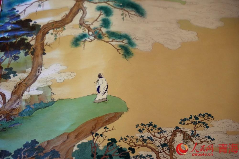 “熱貢藝術(shù)的傳承史,本身就是一部多民族文化交融史。”龍樹畫苑負責人完德尖措的話音未落,大家的目光已被畫布上的絢麗色彩吸引。