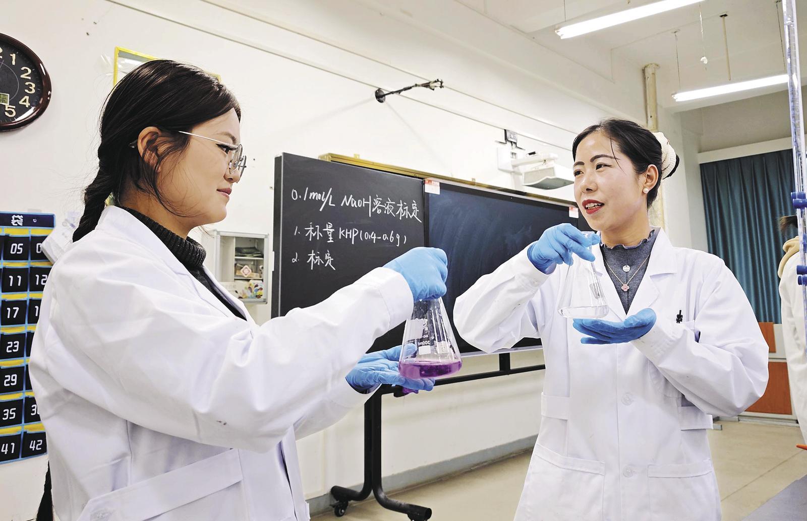 在老師帶領(lǐng)下學(xué)習(xí)化學(xué)分析課程中的氫氧化鈉標(biāo)定內(nèi)容。