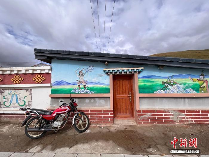 在傳承中煥發(fā)新生的,還有深入牧民生活的格薩爾文化。走進(jìn)果洛甘德縣江千鄉(xiāng)恰曲那村,民居外墻上一幅幅彩繪,生動(dòng)講述著戰(zhàn)神格薩爾王從幼年至稱王的傳奇。