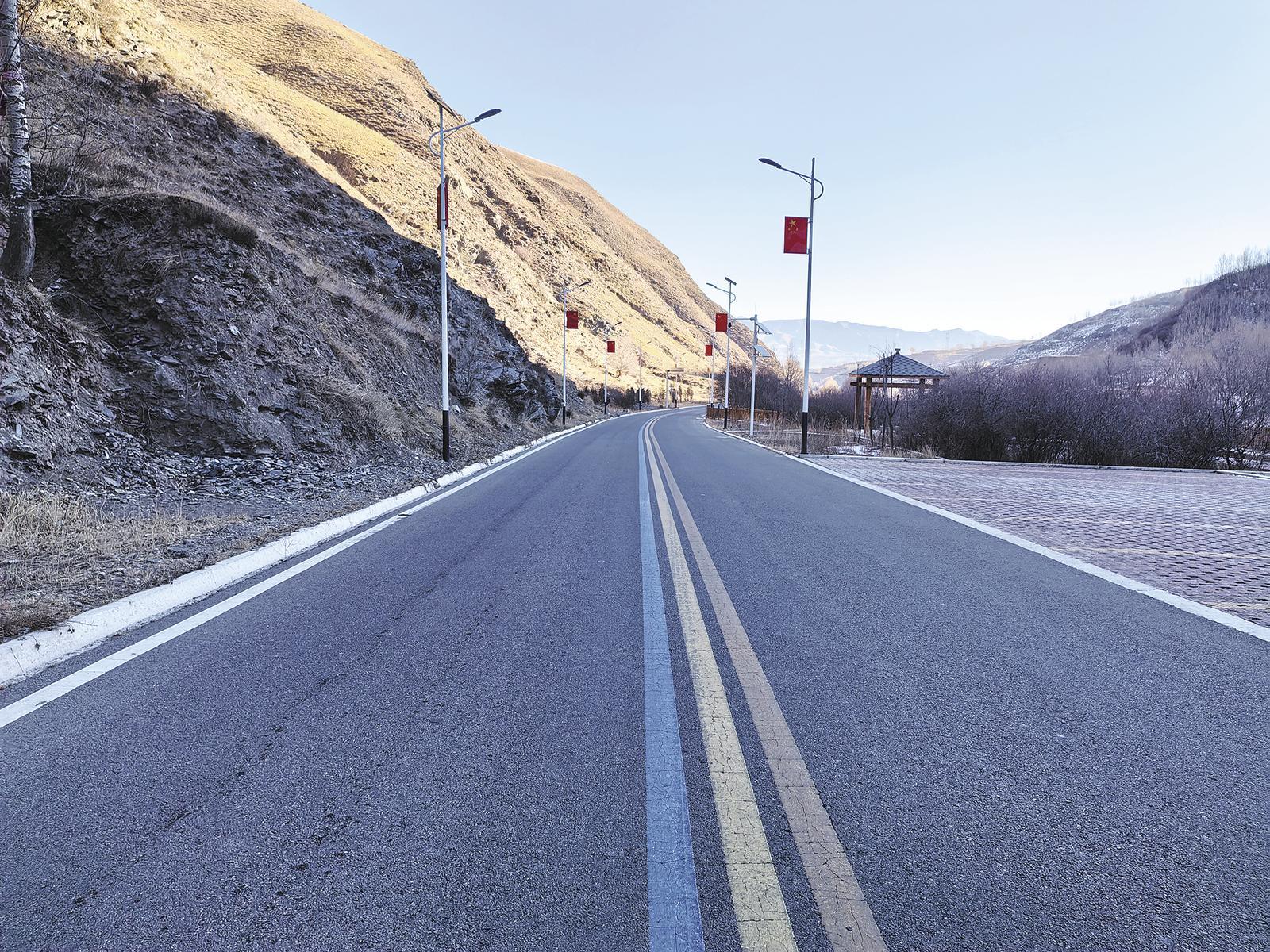 1月8日,冬三九第一天,暖陽灑在寬闊平坦的西寧市湟源縣大華鎮(zhèn)阿家圖至鏵尖公路上,紅黃藍(lán)三色標(biāo)線隨著道路延伸至遠(yuǎn)方,公路串聯(lián)起沿途的村莊,連接起阡陌縱橫的村間小道,靈動壯美的公路網(wǎng)和村景相得益彰。