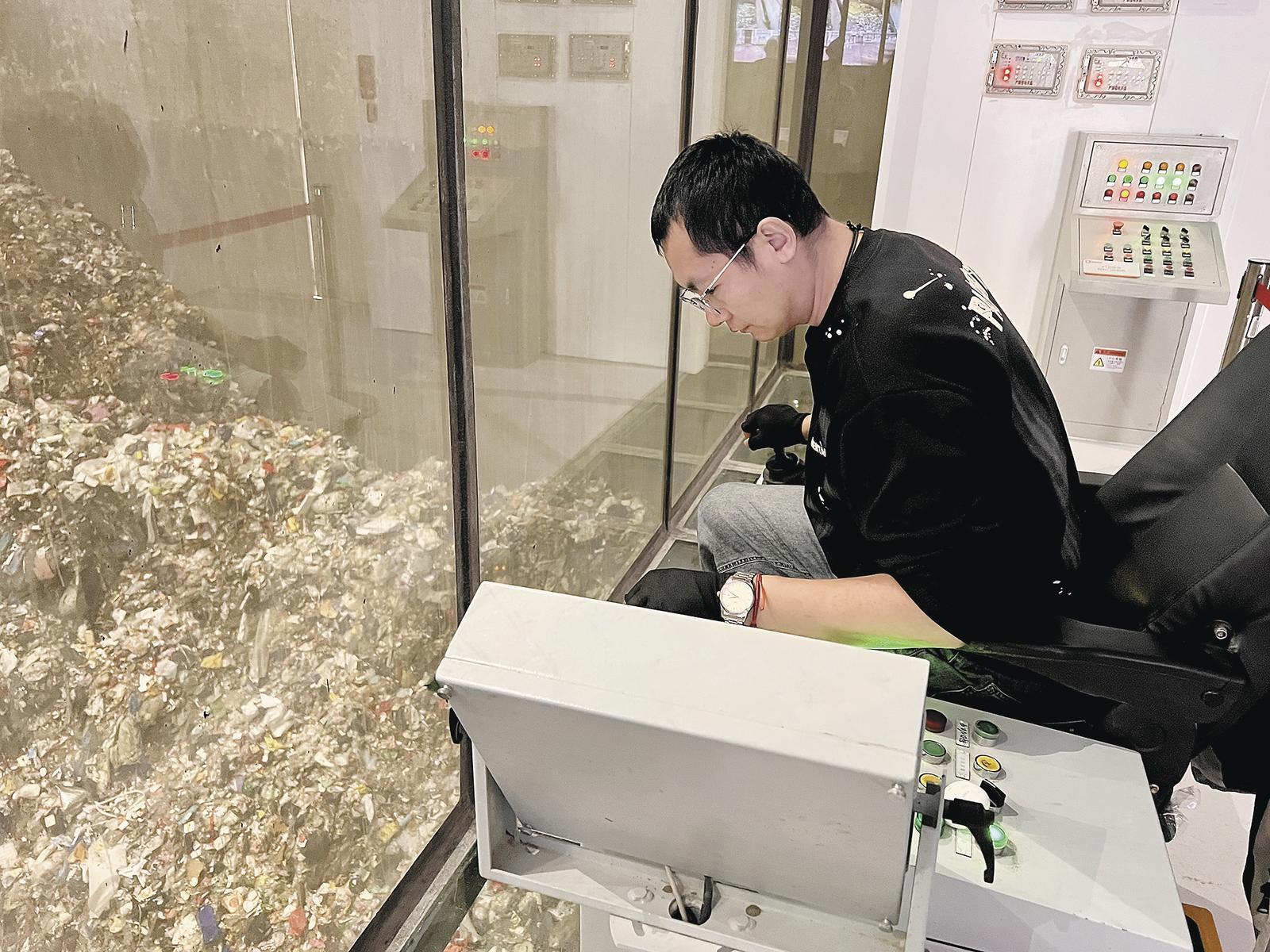 在垃圾吊控制室,透過巨大的觀察窗,2萬噸容量的垃圾池仍透著強(qiáng)烈的壓迫感,宛如無底深淵。操作員白龍坐在操作椅上,熟練操控自重8噸的機(jī)械爪,一爪下去,近17噸的垃圾被帶到半空中,等待投向焚燒爐口?!拔覀儗?shí)行24小時(shí)三班倒制度,全年沒有節(jié)假日,每個(gè)班次差不多每半小時(shí)就要投運(yùn)一次?!卑堈Z氣沉穩(wěn),目光鎖定屏幕與機(jī)械爪軌跡。