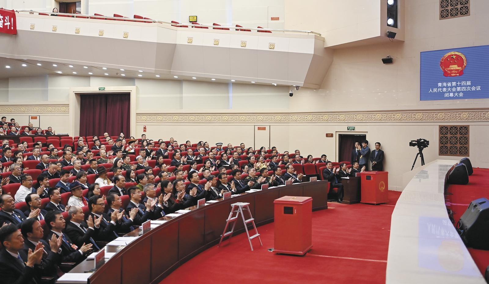 1月30日下午,青海省第十四屆人民代表大會第四次會議圓滿完成各項(xiàng)議程,在青海會議中心勝利閉幕。本報(bào)記者 張地委 祁國彪 王湘琳 攝