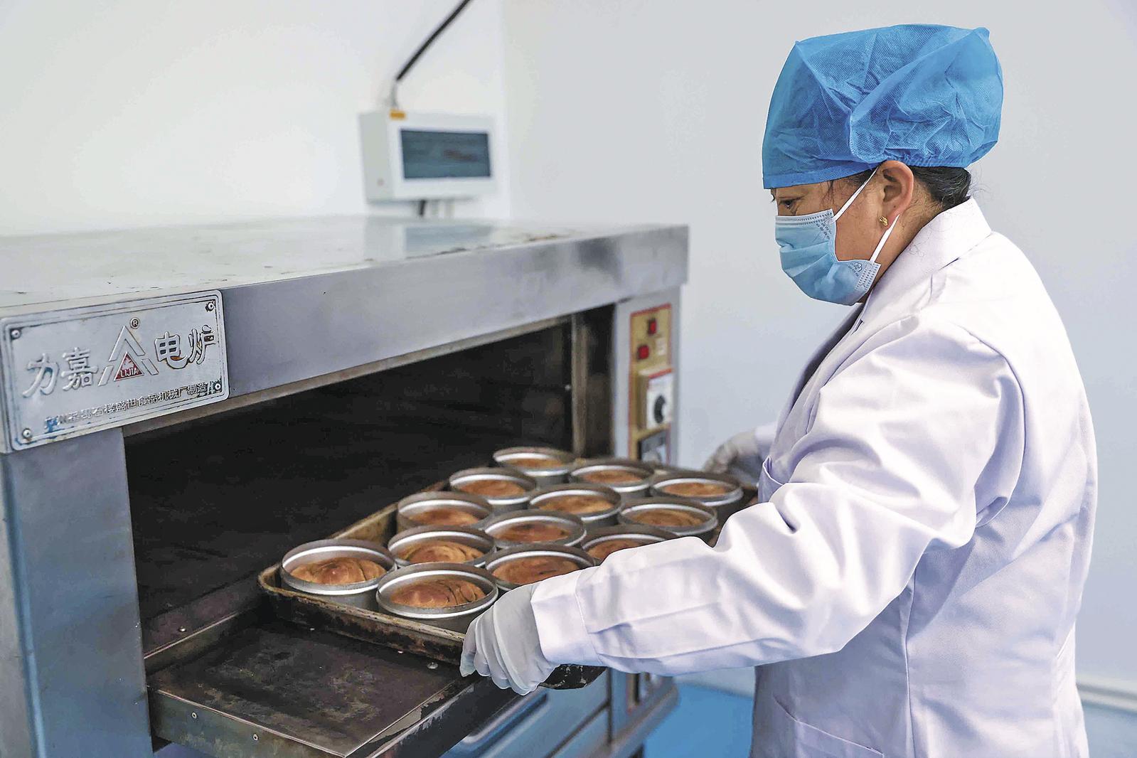 2月4日,西寧市大通回族土族自治縣新莊鎮(zhèn)臺其莊村的青海鑫盛農(nóng)副產(chǎn)品加工有限公司車間內(nèi),暖意融融、香氣四溢。切配、攪拌、塑形、烘烤,工人有條不紊地忙碌著,一塊塊金黃飽滿的菊芋餅在流水線上逐漸成型,空氣中彌漫著菊芋獨有的清甜與麥香。臺其莊村村民祁占才額角滲著細(xì)汗,臉上卻掛著滿足的笑意:“在家門口上班,每天能掙150塊,馬上過年了,剛好掙了錢給家里人買新衣,開開心心過大年?!?/p>