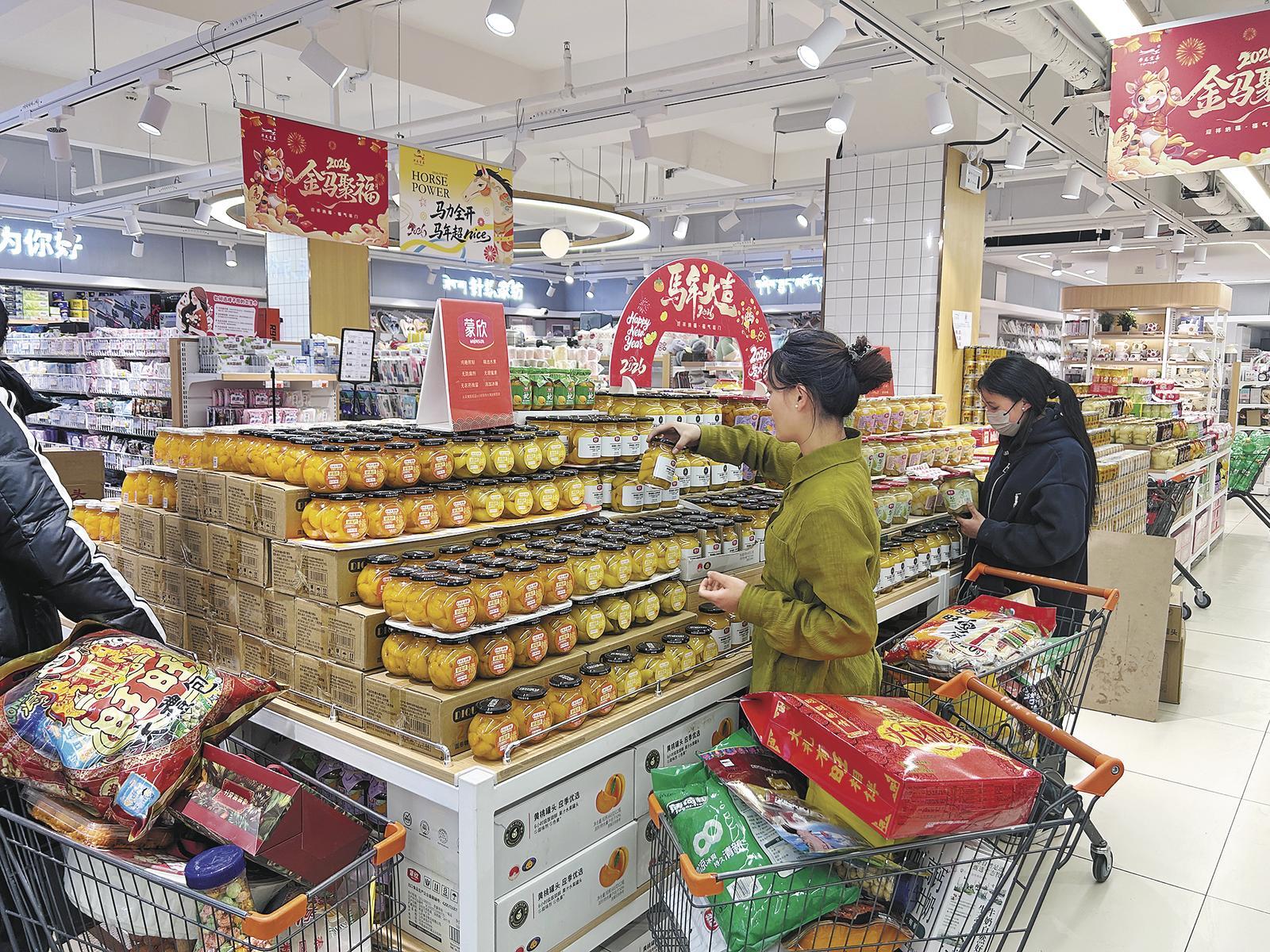 正在選購年貨的江永,在他的購物車?yán)锛扔薪o老人準(zhǔn)備的酥油,也有給孩子買的零食和水果。“老羅的超市辦得越來越好了,往年辦年貨要跑好幾個(gè)地方,今年在超市里一次性就能買全嘍!”江永點(diǎn)開手機(jī)里的消費(fèi)券核銷記錄,笑著說:“我已經(jīng)領(lǐng)了3張券,今天買的這箱紅酒,比平時(shí)便宜不少?!?/p>