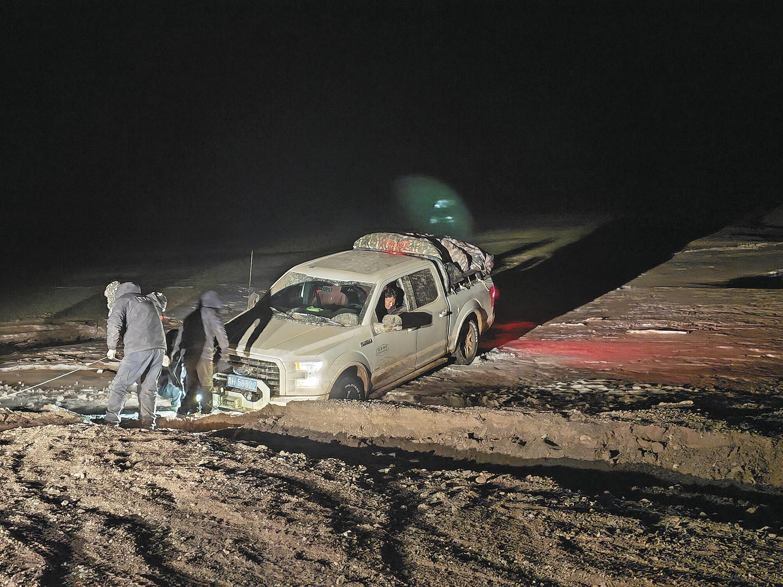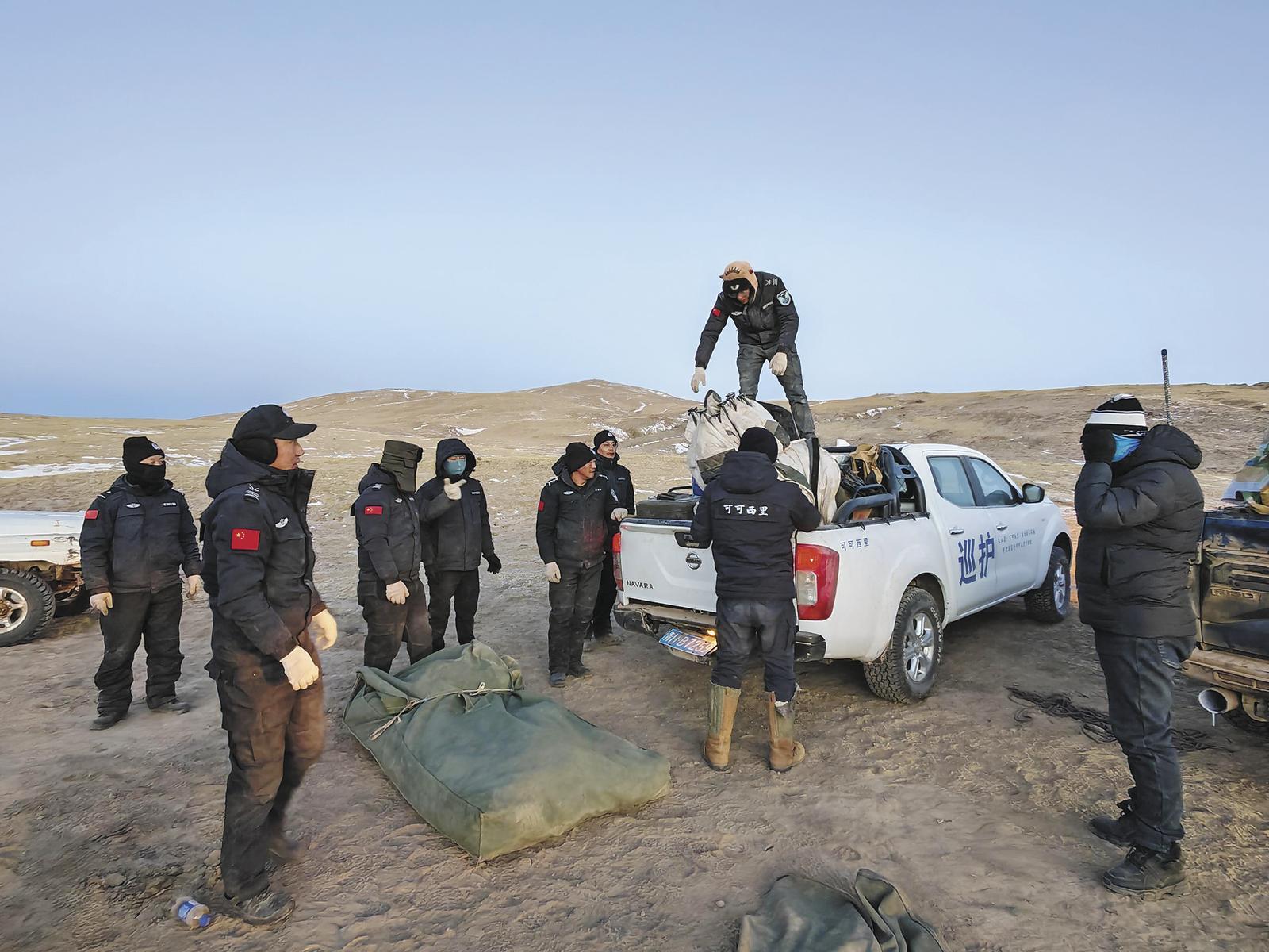 “此行主要為打擊N35非法穿越,我們沿著非法穿越者常走的路線,路上也遇到了很多困難?!彪S隊記者口述,為了盡早趕到庫南保護站,8日20時一行人從太陽湖出發(fā),車輛卻不斷陷入冰河,還遭遇了爆胎。9日早晨6時,大家才在車里休息了兩個小時,之后接著趕路。在斷斷續(xù)續(xù)的信號中,隨隊記者陸續(xù)發(fā)回現(xiàn)場照片和視頻。