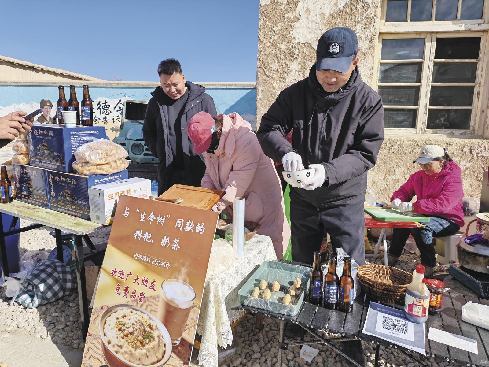 2月10日,恰逢北方小年,海西蒙古族藏族自治州德令哈市柯魯柯鎮(zhèn)舉辦以“煙火柯魯柯、年味最人間”為主題的“生命樹市集”。市集上,蘋果、砂糖橘、草莓等新鮮水果琳瑯滿目,炸油餅、烤腸、特色土豆等風(fēng)味小吃香氣四溢,電視劇《生命樹》同款糌粑備受歡迎。現(xiàn)場(chǎng)筆墨飄香,開展免費(fèi)寫春聯(lián)活動(dòng)。還有熱鬧的社火表演與生態(tài)攝影展覽,民俗風(fēng)情、文旅特色與煙火氣息相融交織,處處洋溢著喜慶祥和的節(jié)日氛圍。副鎮(zhèn)長高永芳告訴記者:“我們將市集設(shè)在《生命樹》取景地,是一場(chǎng)影視情懷、農(nóng)墾記憶與高原煙火的相遇。借著電視劇的熱度吸引群眾消費(fèi),帶動(dòng)當(dāng)?shù)亟?jīng)濟(jì)發(fā)展,讓大家在置辦年貨、趕市集的過程中,感受濃濃年味,樂享幸福生活。”記者 欒雨嘉 蘇烽 攝