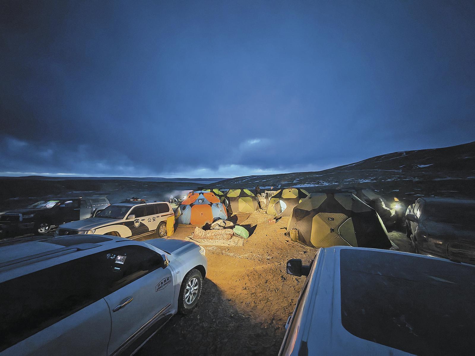 巡山夜幕下的營(yíng)地。本報(bào)記者 張多鈞 才貢加 攝