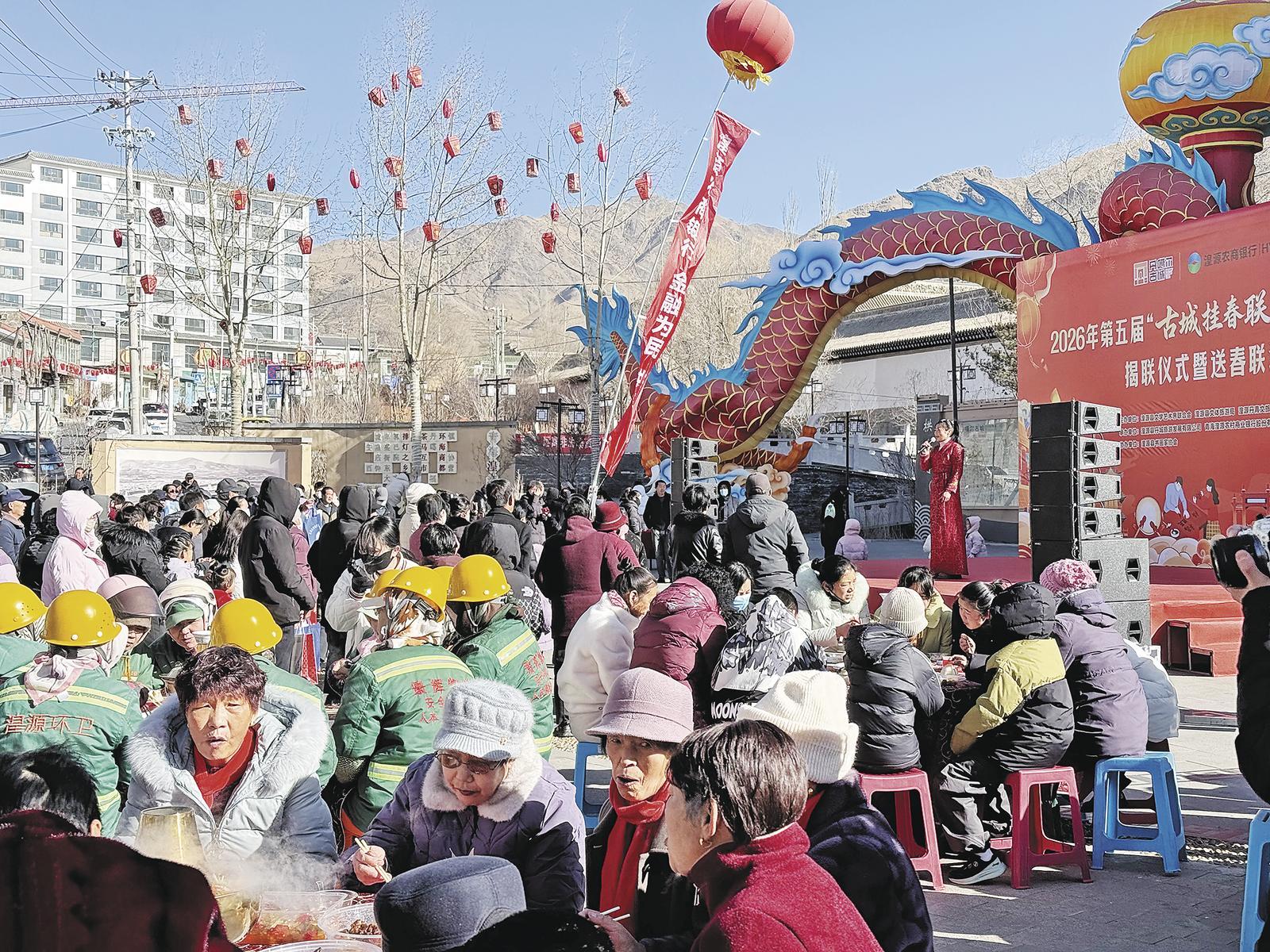 首頁 / 新聞 / 涉藏新聞 / 青海 / 正文 圖片新聞 來源 : 青海日報 作者 : 劉祎 發(fā)布時間 : 2026-02-14 字體 :小 中 大 中國藏族網(wǎng)通訊 2月10日,2026年第五屆“古城掛春聯(lián)?湟源開門紅”揭聯(lián)儀式暨送春聯(lián)活動在西寧市湟源縣丹噶爾古城舉行。河湟暖鍋宴成為本次活動的亮點,酸辣里脊、手抓羊肉等經(jīng)典河湟佳肴輪番上桌,熱氣騰騰的暖鍋滿載本土風(fēng)味?;顒犹貏e邀請退役軍人、巾幗模范、環(huán)衛(wèi)工人、外賣配送員等各行各業(yè)代表參與其中,共賞揭聯(lián)盛事、共品河湟家宴、共迎馬年新春。 編輯 : 拉專措