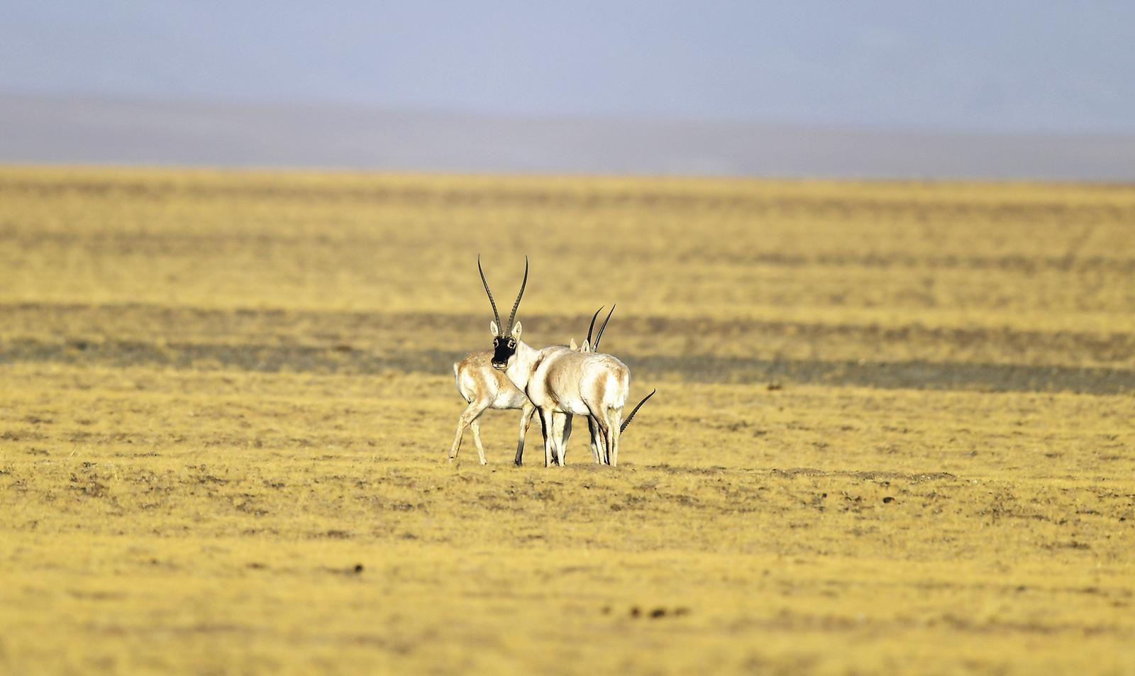 離開庫南保護站時,日頭西斜。隨著距離青藏公路越來越近,成群的藏羚羊出現(xiàn)在視野中。