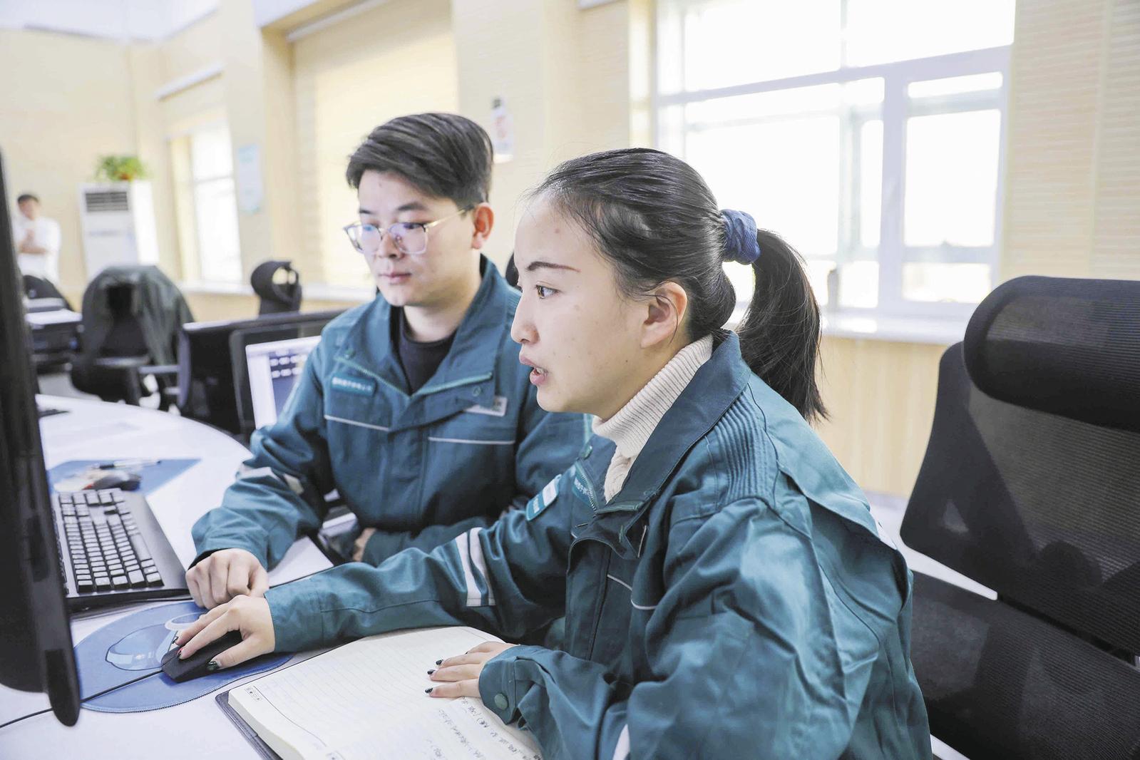 國(guó)網(wǎng)西寧供電公司電力調(diào)度控制中心主值調(diào)度員李一凡和同事春節(jié)期間堅(jiān)守崗位。 記者 董潔 攝