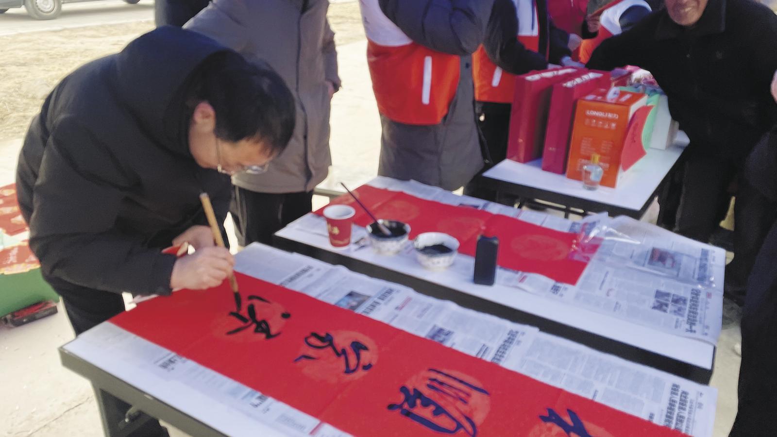 為村民寫春聯(lián)。記者 馬振東 攝