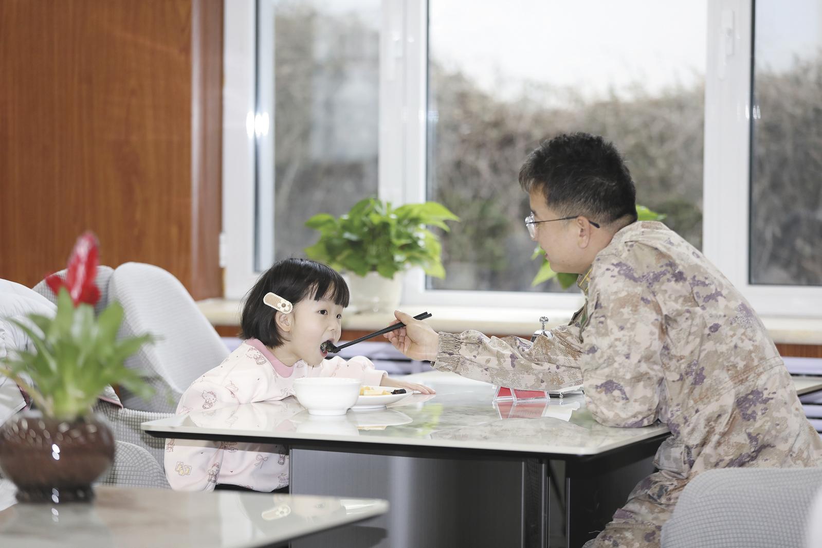 這些公寓不僅提供了住宿保障,更成為凝聚親情的小小家園。9歲的軍娃小輝在房間墻上畫下一家三口的畫像;從四川趕來的軍嫂,特意帶上家鄉(xiāng)的臘腸,讓丈夫嘗嘗“家里的味道”。小小空間里,裝下了一整年的牽掛。