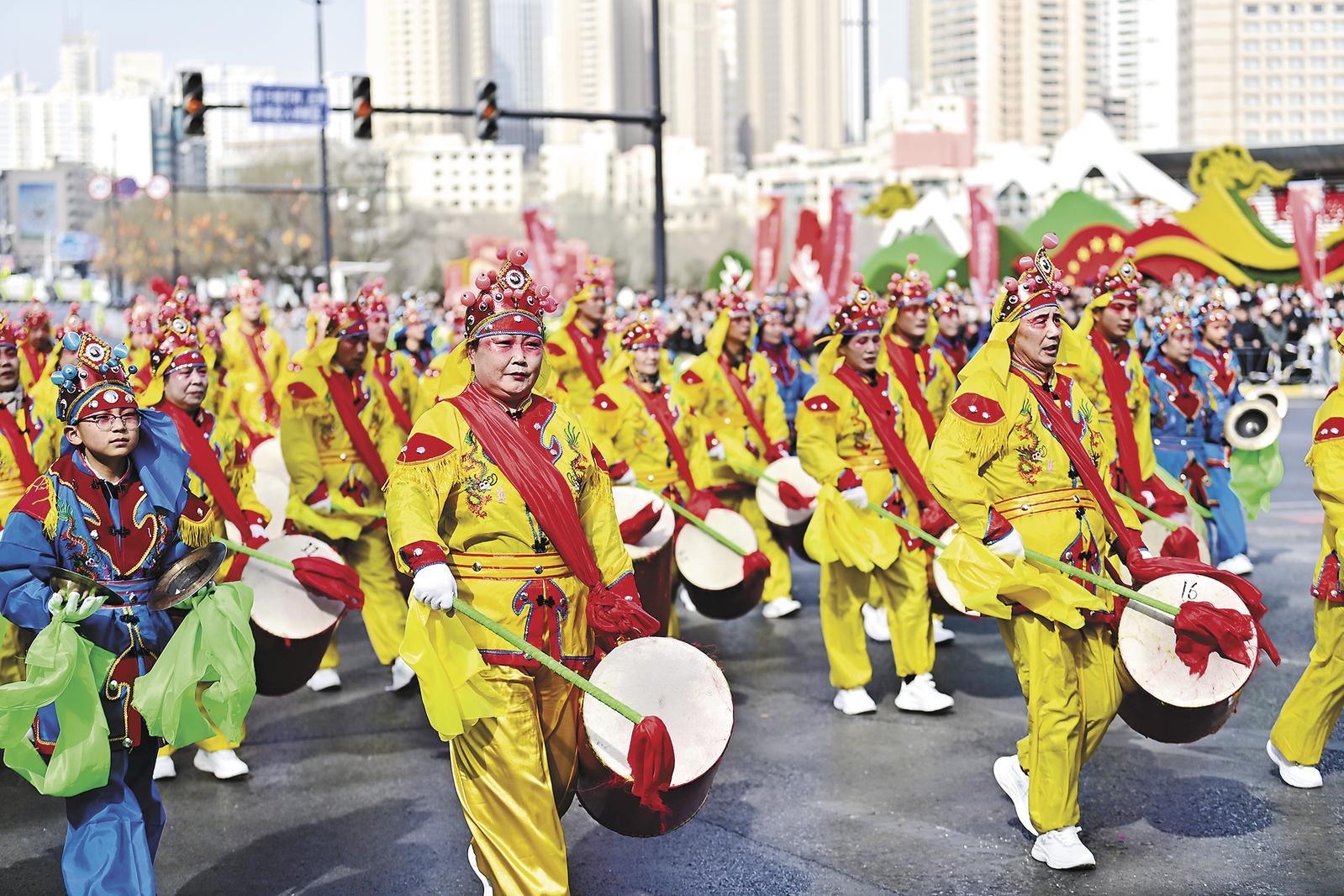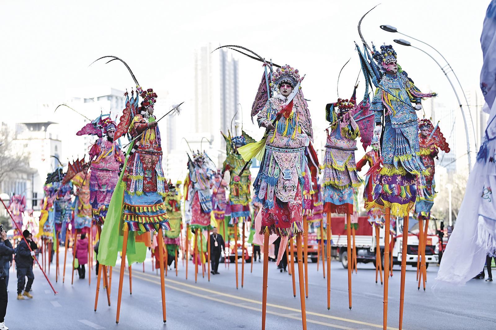2月26日,西寧市中心城區(qū)延續(xù)新春社火熱潮,九大方陣以“馬躍河湟新歲來·豹瞰昆侖百福至”為主題展開巡游?,F(xiàn)場(chǎng),高蹺演員足踏凌云步,舞龍獅翻騰賀歲,雪豹萌寵與各類民俗表演穿插登場(chǎng),引得萬人空巷。舞扇、秧歌、威風(fēng)鑼鼓等非遺節(jié)目輪番上演,觀眾爭相拍攝,鑼鼓喧天的盛景與演員互動(dòng)撒福的瞬間讓河湟年味十足。