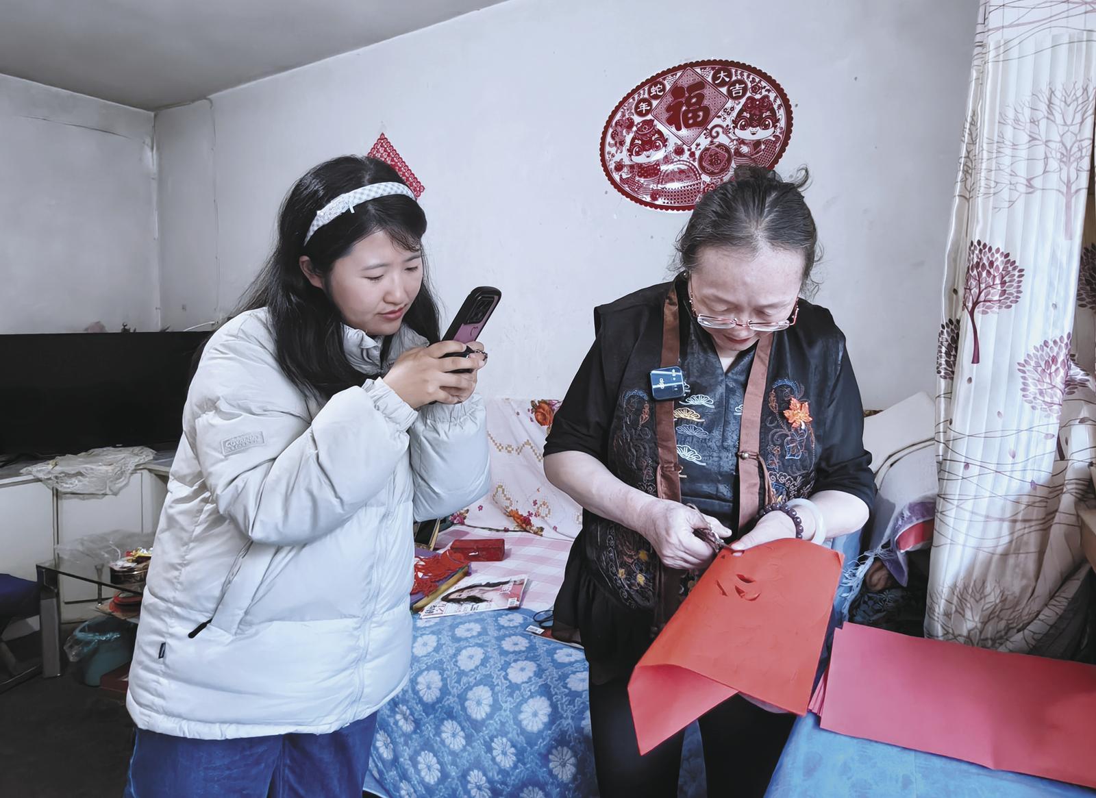 青海日報記者冉志敏拍攝剪紙非遺傳承人剪制窗花技藝視頻。